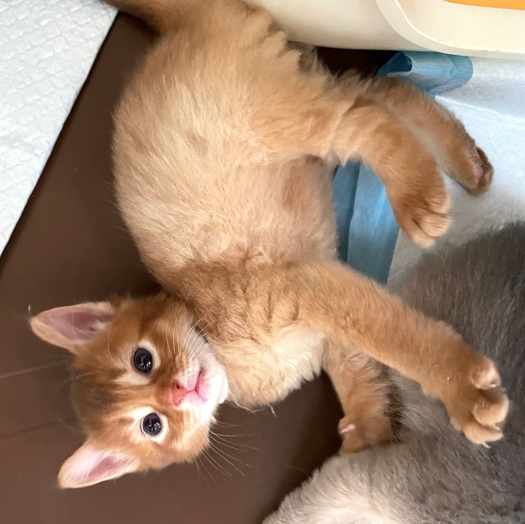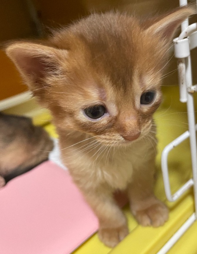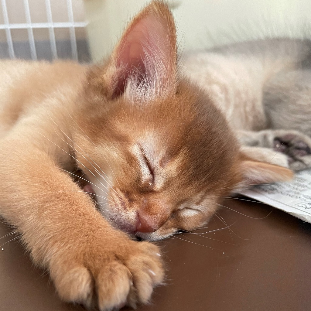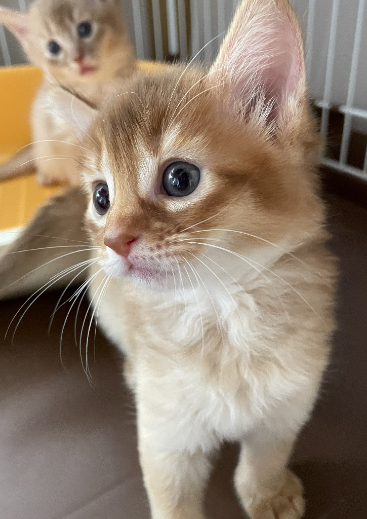 チャームポイント:綺麗な薄めの赤毛の男の子。二人兄弟なのでふたりで追いかけっこしたり、お兄ちゃん猫に追いかけられたりして遊んでいます。触り心地最高です❤