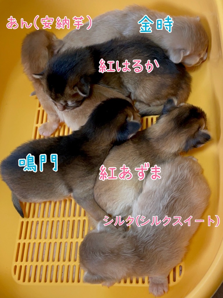 富有と次郎、西条は目が開き、太秋はもう少しって感じ。体の一番小さい夕紅はまだでした☺