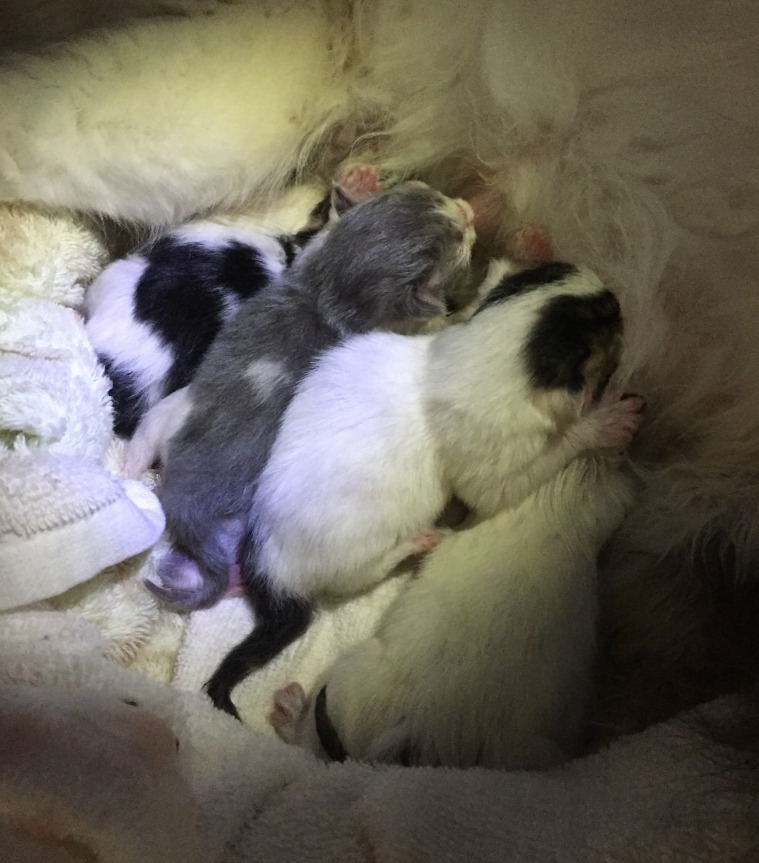 さすがきなこ母!へその緒を噛み切り・胎盤を食べ・体を舐めて乾かし・ミルクをあげる。これを5回。